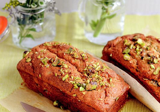 6. Divide the mixture equally into the four tins. Sprinkle over the chopped pistachio kernels.