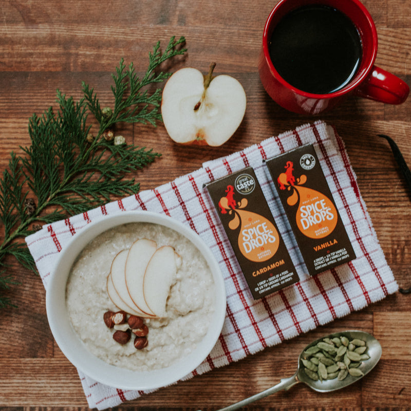 3. Remove the pan from the heat and stir in the Cardamom Spice Drops, Vanilla Spice Drops and maple syrup. Taste test and adjust seasonings if need be.
