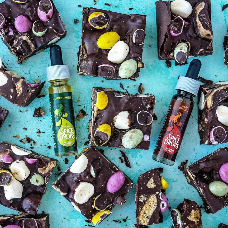 Try this yummy vegan rocky road recipe using Holy Lama Spice Drops natural flavourings by @thekleenkitchen.